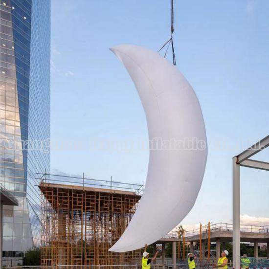 Bright inflatable LED Lighting hanging crescent moon bring a brand new effect. Modern lighting for events, halls, marquees, entrances, stages etc. Light up your venue, creates superb ambient lighting effects. An impressive and eye-catching prop, themed events, sculptural lighting. Use this concept to enhance your event. Inflatable crescent moon is suitalbe for Wedding, Party, Club, Concerts, Public performances decoration or other place, Celebration parties, etc. Custom LED Lights Inflatable items is the most popular inflatable decoration that it is exciting and amazing for a party or any theme events.