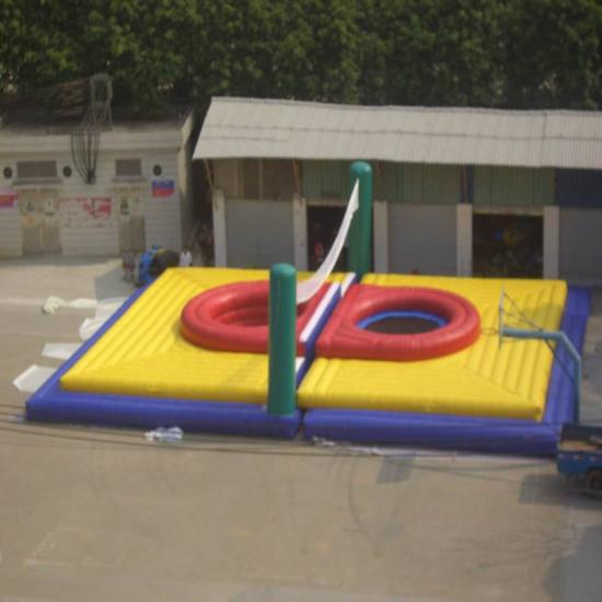 Inflatable Beach Volleyball Court with Trampoline,this inflatable game is played between two teams of each 4 or 5 players.The aim is for each team to ground the ball on the opponent's field.
