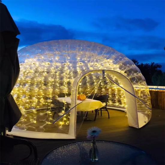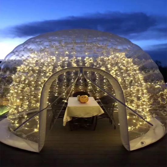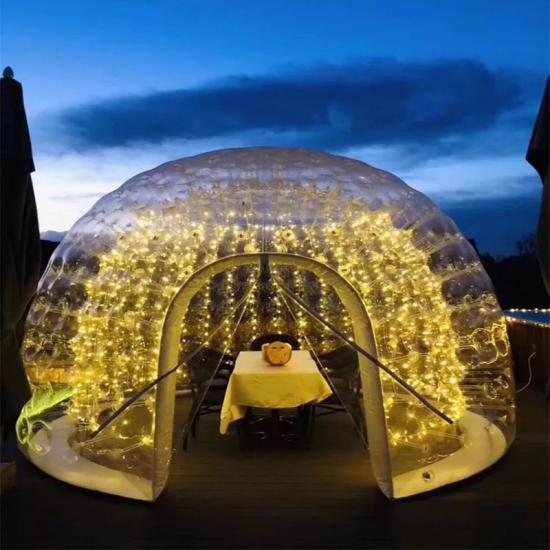 PVC dome house inflatable transparent party tent is made of PVC. The inflatable dome tents are easy to set up and move place to place,the bottom with anchor parts. It can be easily fastened with fix point when in wind weather. The stable constructions of an unusual form are a novelty in the market of inflatable frameless dome tents. Inflatable dome tents are widely applied for the indoor and outdoor events like camping, holiday leisure outdoor activities, trade shows, exhibitions, promotion, outdoor shelter, car shelter, etc. And the inflatable dome tents also is a good tools for advertising events.
