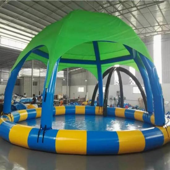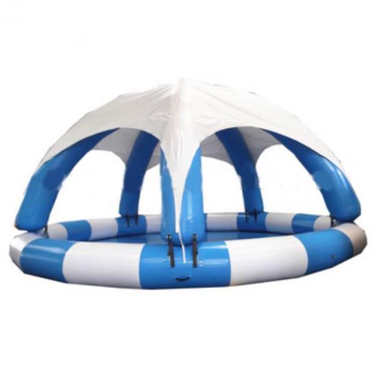 Airtight inflatable swimming pool is a container filled with water that is used for swimming or other water-based recreation. These swimming pool inflatables usually made of strong PVC tarpaulin. They usually decorative or custom shape and sizes, or they may be of a standard size. The powerful filter pump will keep your water clean and fresh throughout the season, giving you endless hours of splash time.